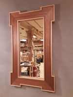 Stylish, elegant and yet practical, this classic mirror owes its design to the Regency era. The mirror is handcrafted in African Mahogany and Sugar Maple and measures 15" x 25". The mirror is 8 9/16" x 18 5/8". All of my mirrors are handcrafted works of art constructed of a renewable resource, solid wood – both domestic and exotic - no veneers - and all have three (3) coats of a rich, hand rubbed lacquer finish.